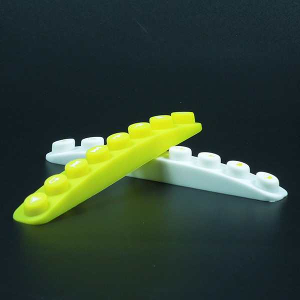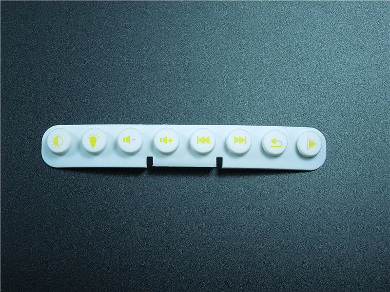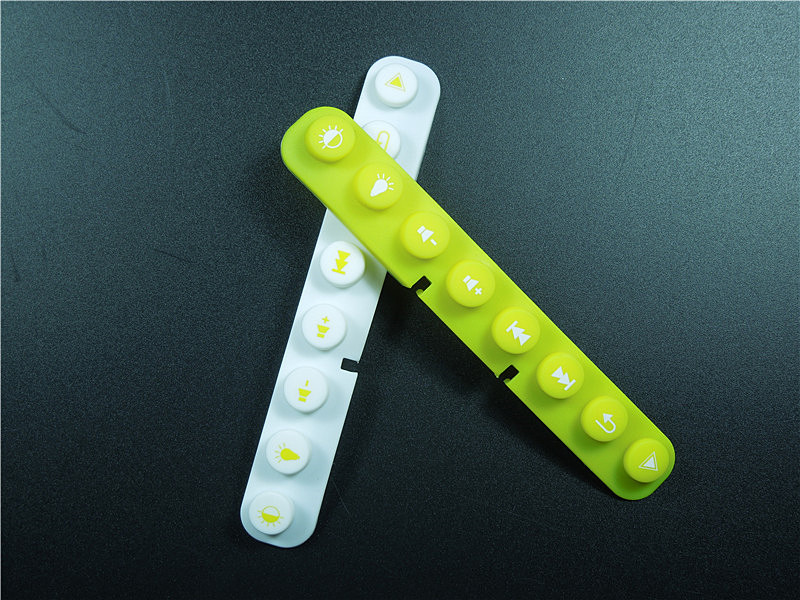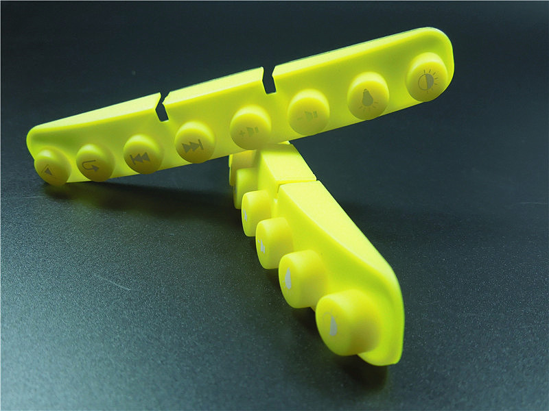 此款硅膠按鍵采用淡黃色色母調制,黃色色母加上半透明的硅膠原料配合硫化劑的添加是通過在里面加入對應顏色比例的顏色色膏混煉,得到相應需要的顏色,可自定義顏色定制加工生產,原材料采用食品級環保硅膠、質地柔軟,可塑性強。低碳環保,無毒無味,柔軟、防滑、防震、防滲水、隔熱、不易老化、不褪色、易清洗。